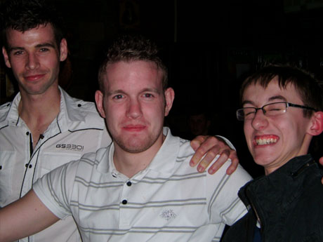 Michael with player Gary Wood (left) and Sean Kennedy (centre) at the National Dingwall